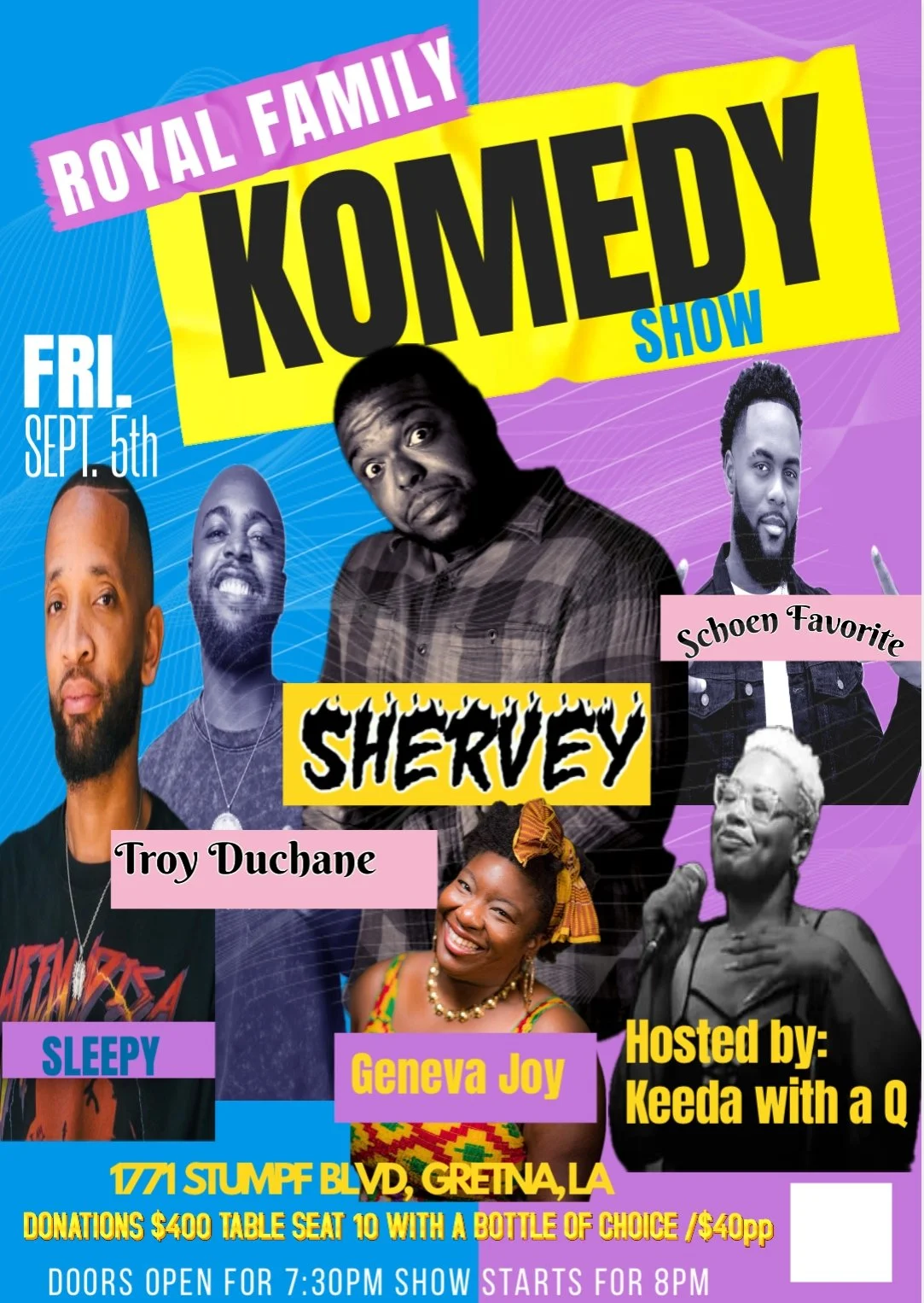 Royal Family Events Royal Family Komedy - Ticket $40.00 Add To Cart Added! Royal Family Komedy - Table $400.00 Bottle: Select Bottle Tito’s Grey Goose Crown Royal Kettle One Hennessy Patron Crown Apple Casimogos Jack Daniels Herradura Add To Cart Added! Float Riders Payment $1,400.00 Add To Cart Added! Float Riders Payment $1,000.00 Add To Cart Added! Float Riders Payment $750.00 Add To Cart Added!